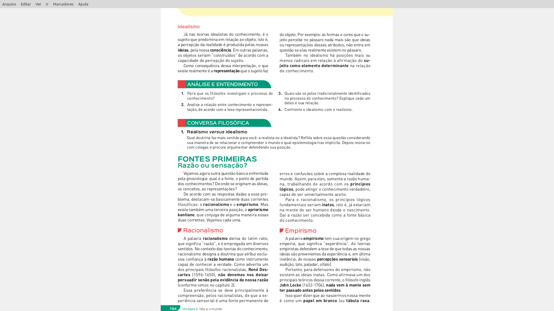 3) Diferencie o idealismo do realismo.